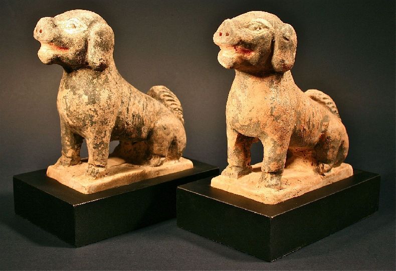 Museum-Quality Clay Dogs, Ming Dynasty (1368–1644) These bold and lively painted standing dogs are a striking example of Ming Dynasty craftsmanship. Slightly oversized, they feature some of the most expressive and finely detailed facial features we have ever encountered in this form. Their scale, as depicted in the images, scarcely conveys their true presence. While these pieces have not undergone TL testing, a Certificate of Authenticity can be obtained upon request for a fee through a reputable lab in Oxford, England. Additionally, I have access to one of the top importers of Chinese artifacts, ensuring their provenance and authenticity. Chinese guardian lion statues, often referred to as "Fu Dogs," "Foo Dogs," "Fu Lions," "Fo Lions," or "Lion Dogs," are deeply rooted in Chinese art and culture. Lions, though not native to China except possibly in the far western regions, were widely known and imbued with symbolic significance. In Chinese artistic traditions, lions were often depicted with dog-like features, blending mythical and realistic elements. As scholar C.A.S. Williams noted, “The ‘lion’ depicted in Chinese paintings and sculptures bears little resemblance to the real animal. However, it holds a significant place in Chinese folklore.” The practice of referring to these figures as "dogs" in Western cultures is intriguing and widely recognized, though its origins remain somewhat obscure. *** Our Commitment to Quality All of the art featured here is carefully selected for its exceptional quality and craftsmanship before being posted. At Busacca Gallery, we are passionate about enriching our customers’ lives by discovering, curating, and showcasing the finest art from around the globe. As tastemakers, art advisors, consultants, and publishers of spectacular art stories, our mission is to serve as trusted intermediaries between buyers and sellers. We are dedicated to vetting high-end art for discerning patrons, cataloging the world’s most extraordinary pieces, and making them accessible to everyone.