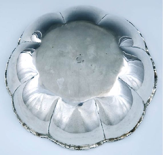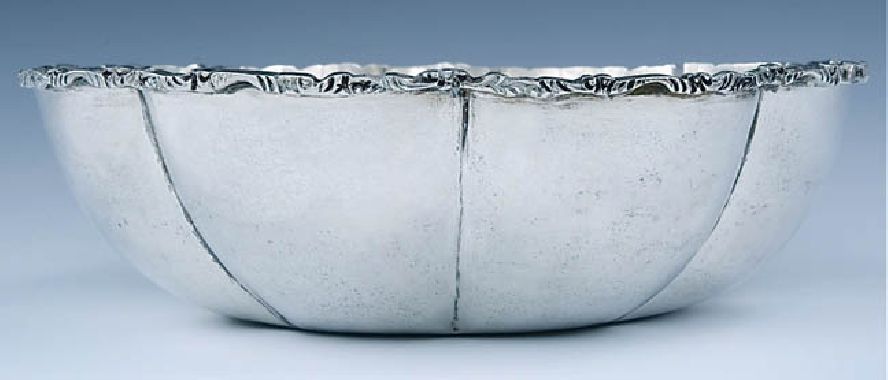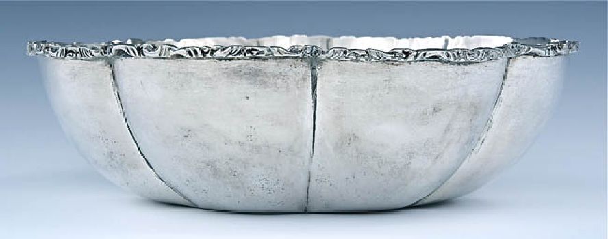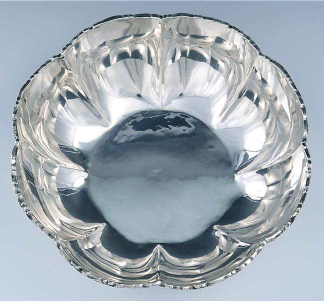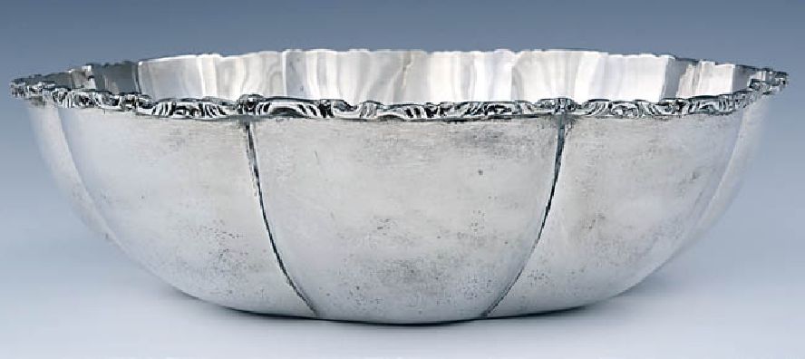 A Mexican Sterling Silver Serving Bowl. This looks to be a hand Hammered bowl. This fantastic and rare antique sterling silver hand hammered bowl were made by some of the best Mexican silversmiths. With lobed sides, applied cast foliate rim, the circular bowl measures apprx. 11"D x 3-1/4"H, marked on the underside. Weighs apprx. 25.25 toz. Condition: Good; a few tiny dents. This is absolutely exquisite work! It would make the perfect addition to a sideboard or dining table. The bowl was hand made from a single piece of sterling silver. The hammered workmanship is so great. The Silver is quite heavy, These where Made between C1920 to 1940. This would also go perfectly with an Arts and Crafts decor.