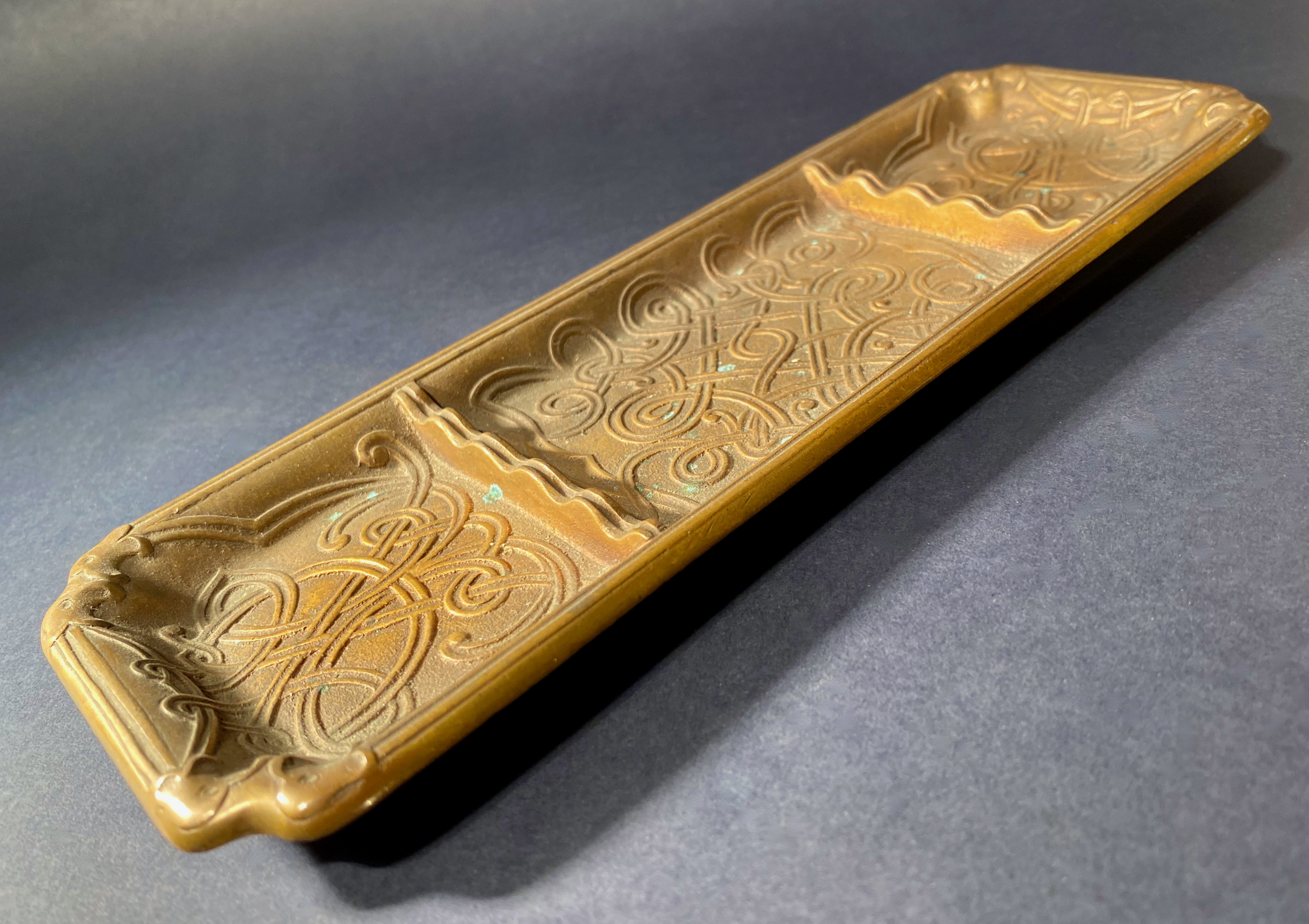 What a great antique display dish for an artist to hold all your pencils brushes and collectible pens. An Amazing art nouveau Victorian display bronze desk dish For holding art supplies. Victorian Pressed Bronze Letter/ Pencil/ Pen Holder/ Art Nouveau writing Display stand - from the 1800s.