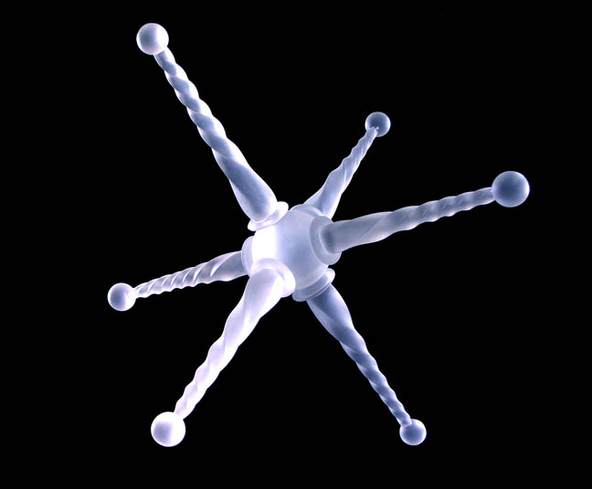 Glass toy jack. This is handblown etched glass, all hand assembled by the artist. Glass toy jack. This is a cool looking over sized milky etched glass toy jack. blown, sculpted, etched, assembled glass. This glass toy jack is large and is heavy enough to be a paperweight. It even looks good as a art knick-knack to display somewhere in your home as decoration." Andy Paiko seems to have more than a bit in common with glass. There is a palpable sense of dedication to finely wrought craftsmanship and to the lusciousness inherent in the material itself. There is also a fascination with science, particularly with Natural History, and with preserving and celebrating relics from the natural world. Somehow, I suspect that all of the above were also ardent fans of Ole Worm‘s taste in collecting. Like something from a Cabinet of Curiosities discovered in a dream, Andy Paiko’s mixed-media glass sculptures are mysterious, exquisite and very, very covet-worthy. Paiko’s sculptural vessels include a dizzying array of baroquely ornate glass bell jars, designed to house bones, shells, coral and other natural (and sometimes gold-plated) treasures.