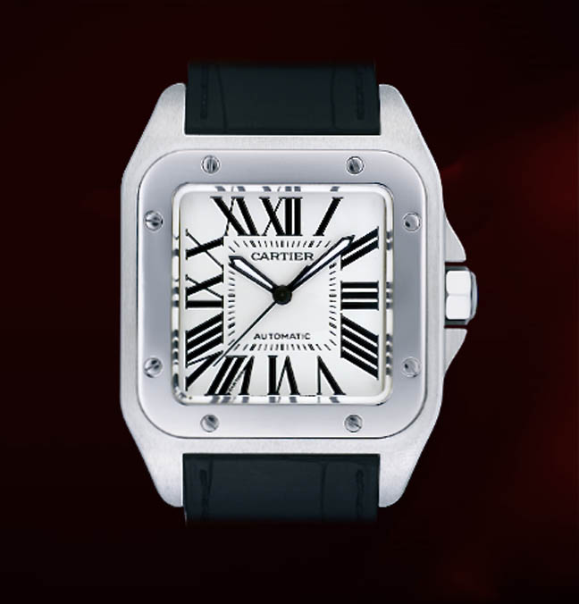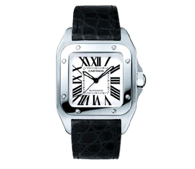 Title: Used Cartier Santos Mens Designer steel Swiss Watch