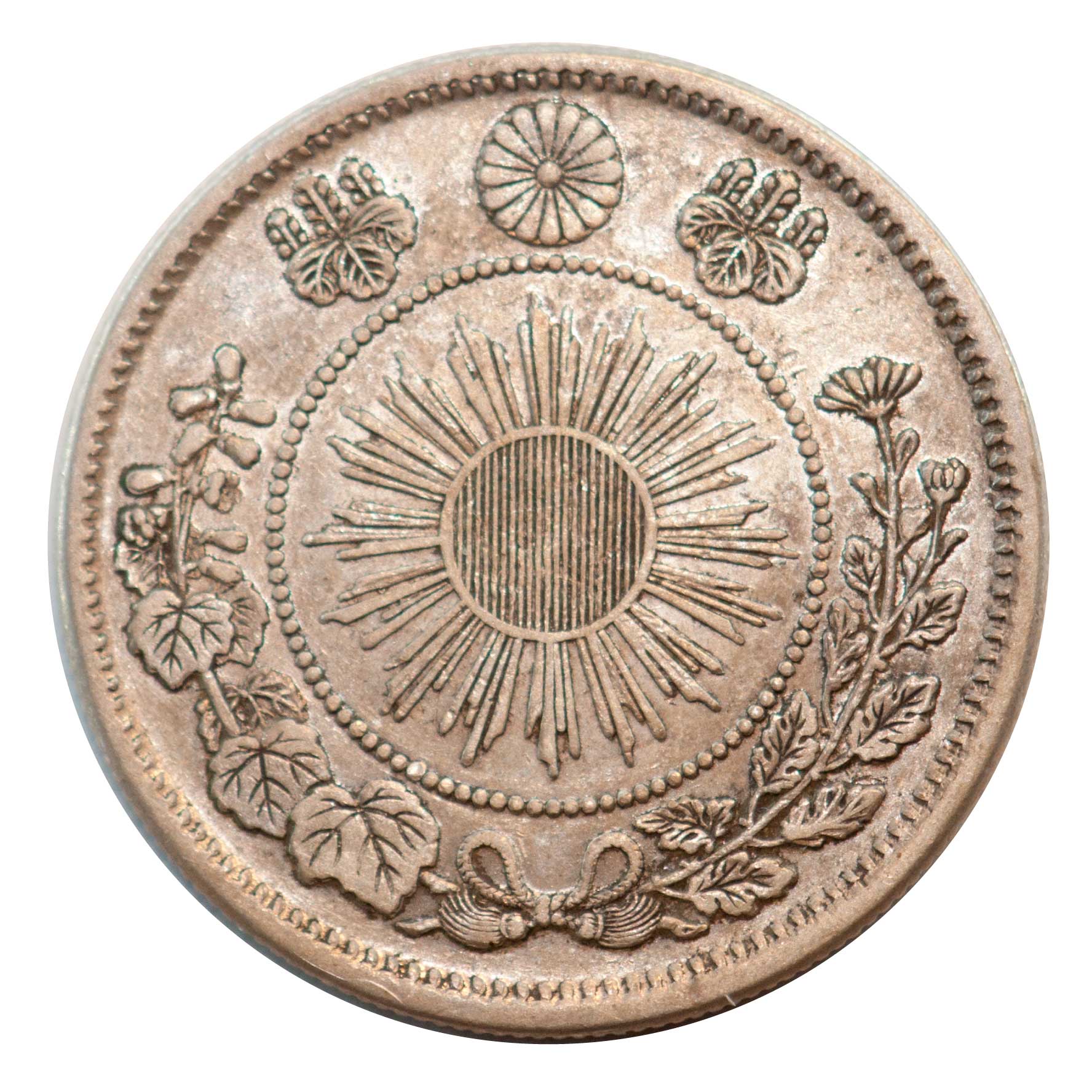 In 1871 Japan changed its currency system from the old ryo based system to a new yen based currency. The coins had a rising sun and a dragon on the back. A second generation Japanese silver coin with minor design modifications from the original 1871 design. Slightly smaller in diameter than the original and has two different dragon designs. This coin has the small dragon which has three spines between the flames. This design was only issued for one year. 2,648,309 coins were issued that year including the other large dragon design. Diameter: 31 mm, 80% Silver 20% copper, weight 12.5 g.