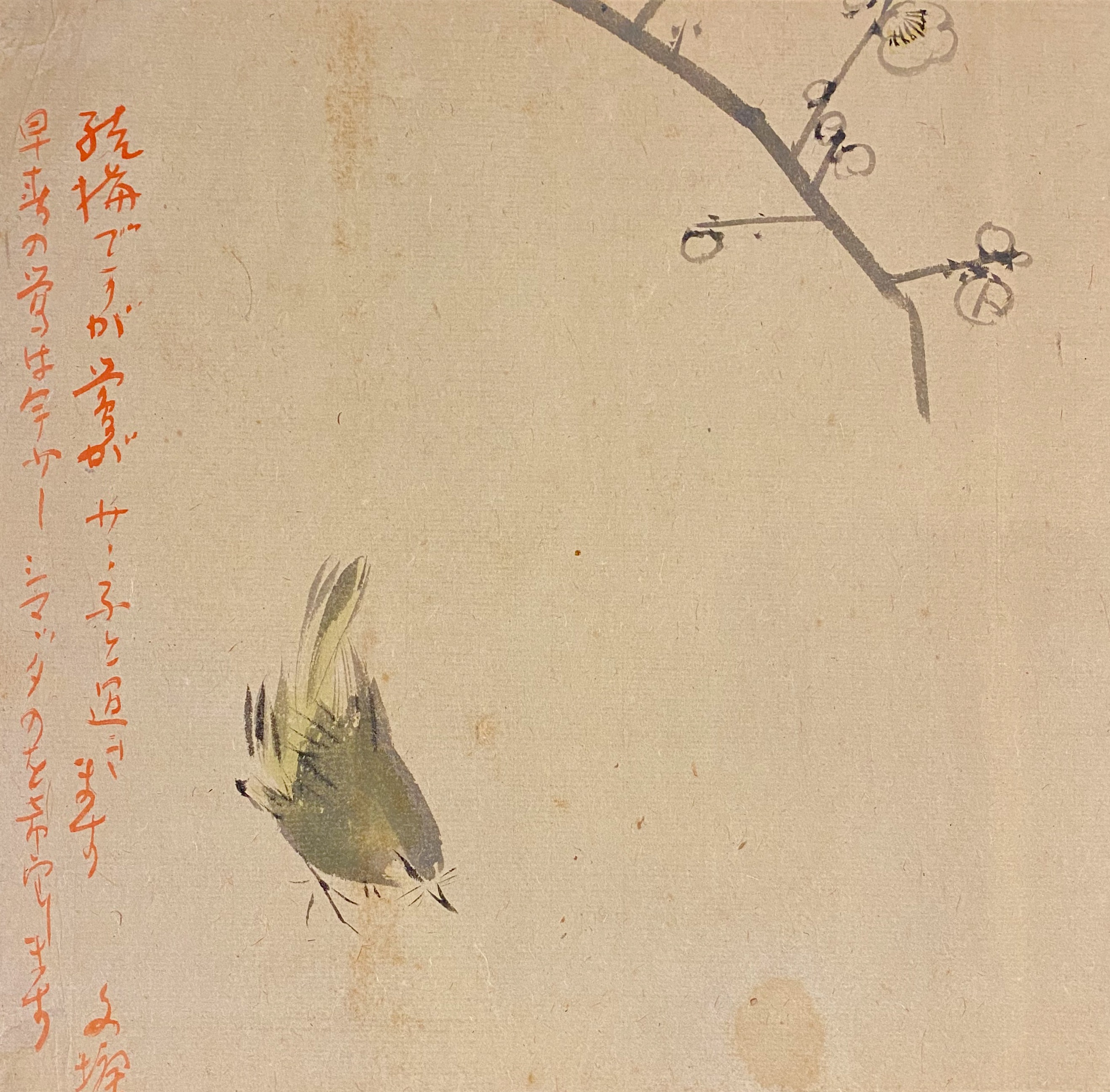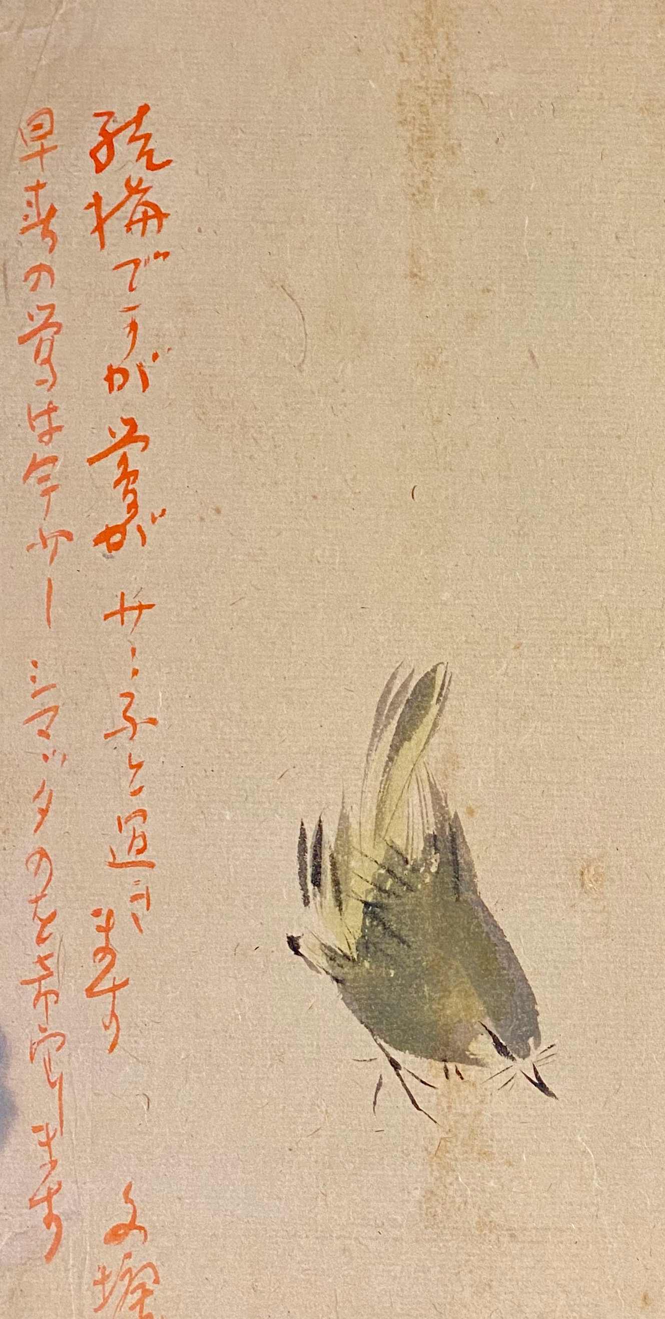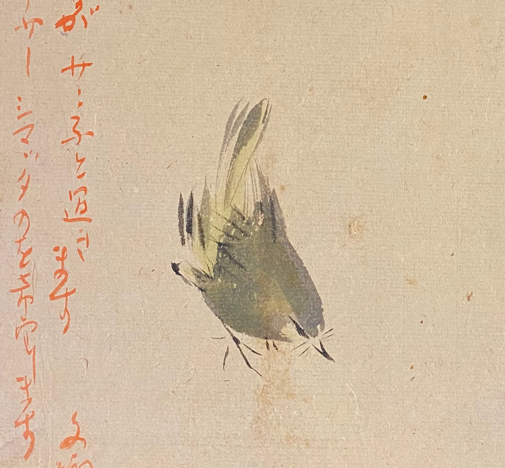 A spectacular little work on paper. An original 19th-century antique black and white ink-wash Asian painting of a Little bird. It is unframed. All frames are purchased separately.
