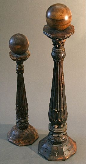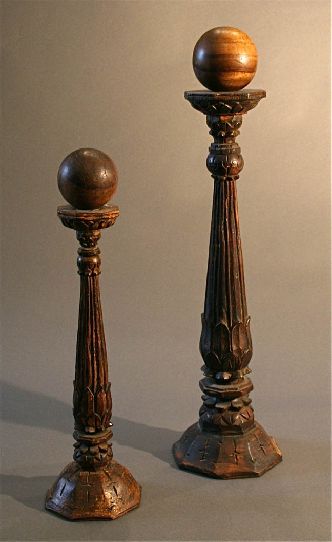 Title: Large antique Wooden Hand carved Spanish Candlestick holders
