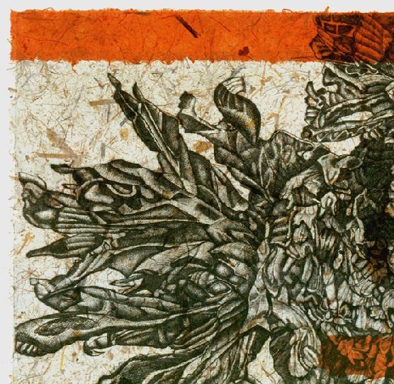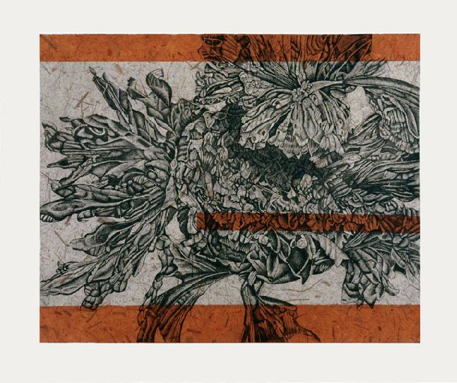 Artist Fran Hardy's solo exhibition delves into the intersection of the ancient and the contemporary, while also blurring the boundaries between realism and abstraction. The artworks, created through hardground etching on Rives BFK with chine collé, form an edition of 30, with an image size of 28 1/2" x 31 1/2". In this collection, Hardy draws inspiration from ancient trees and primordial plants, using them not only as symbolic elements but also as fertile material for her creations. The pieces explore symbols emerging from the abstract 'ooze,' referencing ancient cultures and incorporating elements such as sacred mathematics, petroglyphs, and textiles. The exhibition offers a journey through time, connecting the contemporary with the timeless, and weaving a narrative that transcends the boundaries of artistic representation.