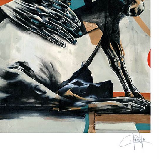 Beast of Burden, 2010: Dave Kinsey “Beast of Burden” is a high quality four color screenprint on cotton rag paper. The print is an edition of only 100 pieces and comes signed, numbered, and stamped. See full print image. Artist Dave Kinsey. This beauty is called 'Beast Of Burden'. This is a 4 colour 18 x 24 inch screenprint on 100% cotton rag paper with an edition size of 100, comes signed and numbered by the artist. Dave Kinsey was born in Pittsburgh in 1971, attending the Art Institute of Pittsburgh and the Art Institute of Atlanta before moving to California in 1994 to pursue a career as a designer and fine artist. His work attempts to capture the universal essence of the human condition mainly through a symbolic portrayal of contemporary life. Utilizing a range of mediums, he constructs multi-layered, textured environments that echo the complexities of our existence. His fine art has been shown in galleries and museums worldwide—among these have been exhibitions at the URBIS Museum in Manchester, UK, NEXT Chicago, Joshua Liner Gallery in NY, Alice Gallery and Art Brussels in Belgium. His work has been featured in multiple local and international print and online publications from The New York Times and Washington Post to The Citrus Report. He has also been invited to speak at institutions such as the Pasadena Art Center, UCLA, Montserrat College of Art and the Semi-Permanent conference in Sydney, Australia.