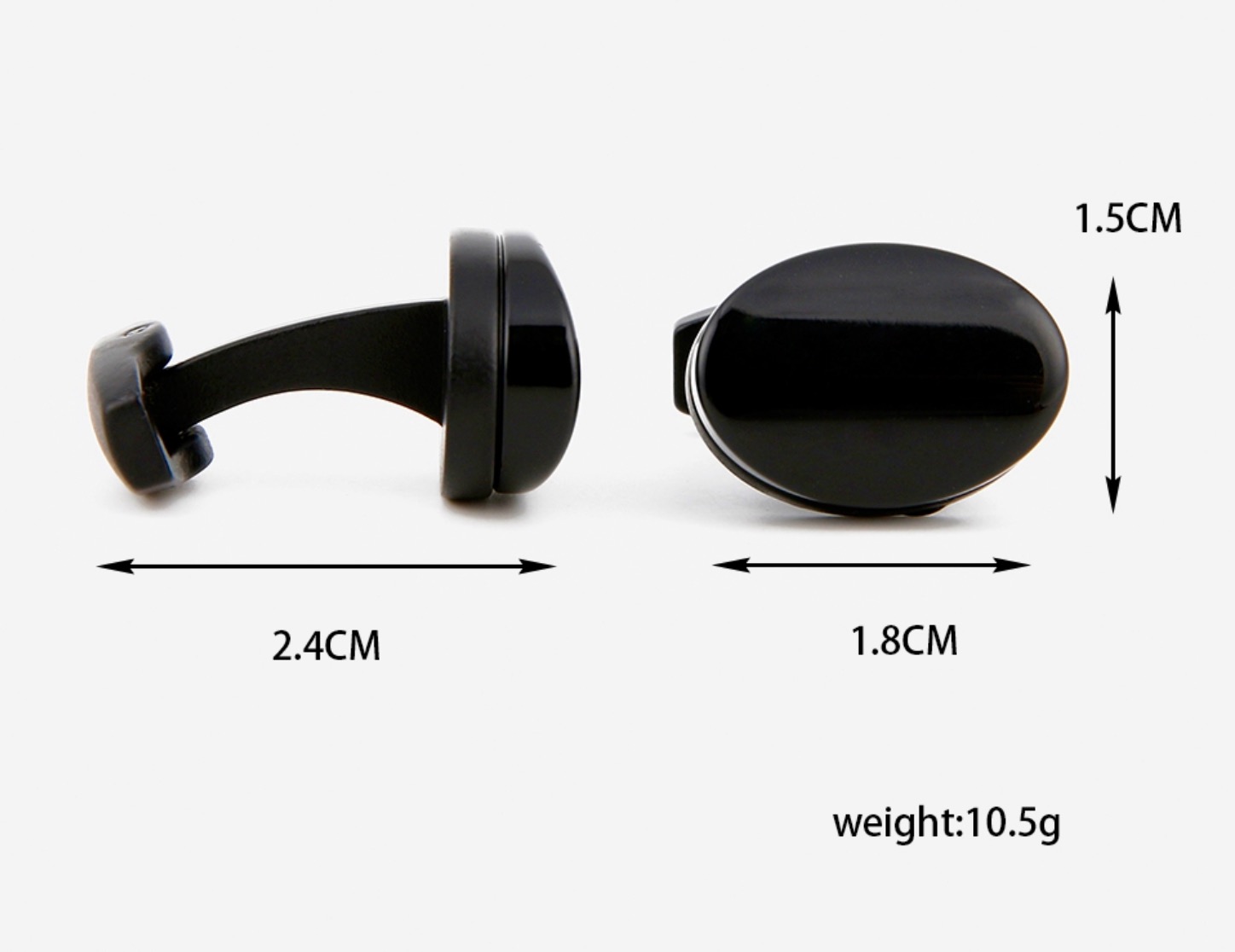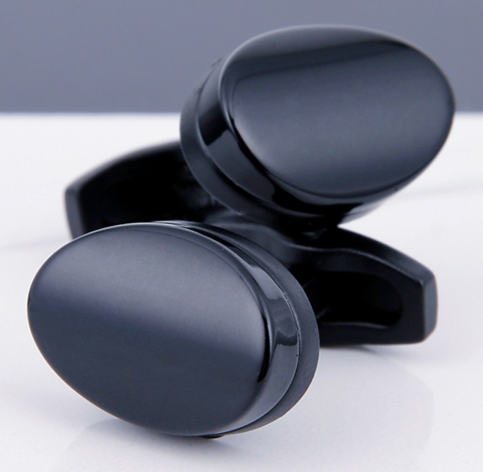 Very elegant High-Quality tuxedo dress shirt Fashion Delicate Unique designer Matte Black Oval Men's Contemporary Cufflinks. Cufflinks have a long history as a fashion accessory for dress shirts. The origins of cufflinks can be traced back to the ancient Roman Empire, where they were used to fasten the cuffs of togas. Cufflinks have evolved over the centuries and have been used by men and women for formal and casual attire. In the 17th and 18th centuries, cufflinks became popular among the aristocracy and were often made of precious metals and adorned with gemstones. In the 19th and early 20th centuries, cufflinks became more widely available and were made in a variety of materials, including gold, silver, and glass. Today, cufflinks are still a popular choice for formal wear and are often used as a subtle way to add a touch of personal style to a dress shirt. They come in a wide range of styles, including classic metal designs, colorful enamel and glass, and novelty shapes.