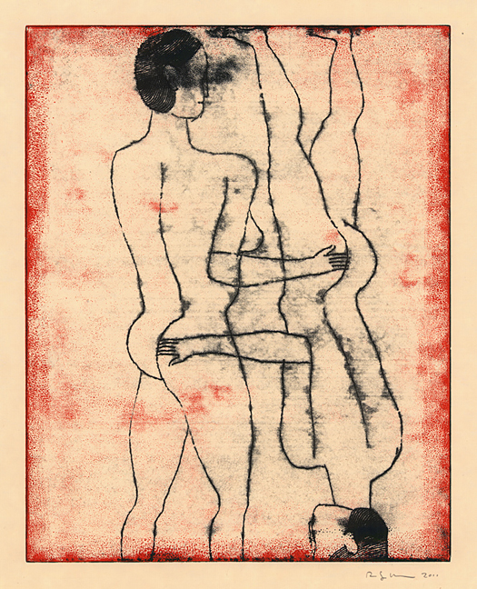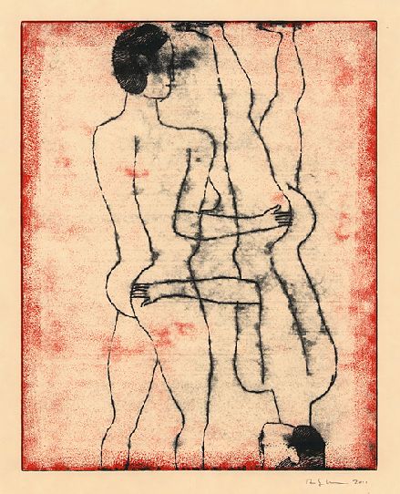 Monotype on hand made archival Japanese Paper. Each is unique and one of a kind. This is not an edition print, it is a Monotype.-- Sacramento Bee Art Critic Victoria Dalkey said this about Richard's monotypes in a review. "His elegant yet emotive monotypes focus on abstracted male and female figures engaged in archetypal relationships. These rich and sophisticated graphics quietly steal the show."