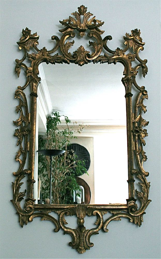 Title: Antique Rococo Gold Gilded Hand carved Wooden Frame & Mirror