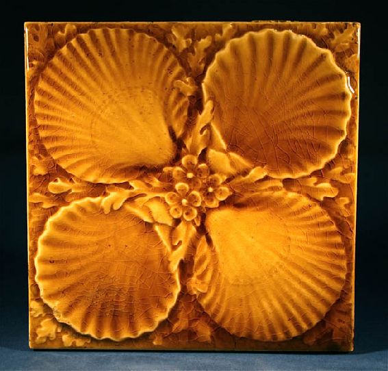 Title: A Stylized Art Deco Neo-Classical Fan Design Shell Glaze Tile