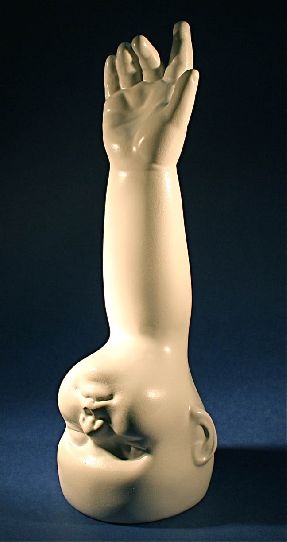 Handout- This is two baby sculpted Antique broken porcelain parts I have fused together as one cool looking contemporary art sculpture. I like my work to be a mix of new art and antique objects. These are 3-dimensional antique fused baby parts, in painted old porcelain. They are one-of-a-kind art objects. Baby parts come in so many shapes and sizes. I like the chubby baby parts the most. I feel like there are thousands of old broken baby parts I could sculpt and fuse together before I would ever run out of ideas. I have filled my studio with all kinds of art things, doll parts, little objects, dolls-in-progress and sculpting supplies. My home studio is a great place to work. I use various kinds of professional art sculptors' clay and glues to make my art. Sculpting a art object begins with finding good parts. It takes many hours of patient concentration to form a realistic-looking art object and to finish it with fine details. I find myself laughing and loving the art work instantly, as I am making it. The shapes and textures of different objects provide an interesting contrast to emphasize my art parts. I like to bring together Contemporary & Traditional works of art with an antique-influenced look. These relationships are explored through painting, sculpting, drawing, and design. I am motivated to create art by an endless curiosity for the controlled and natural design. This new series of paintings and sculpting reveal a more dynamic and complex organization within art. The bold graphic color schemes of my compositions are undoubtedly the most obviously striking feature of the work.