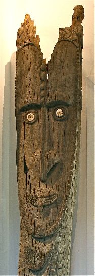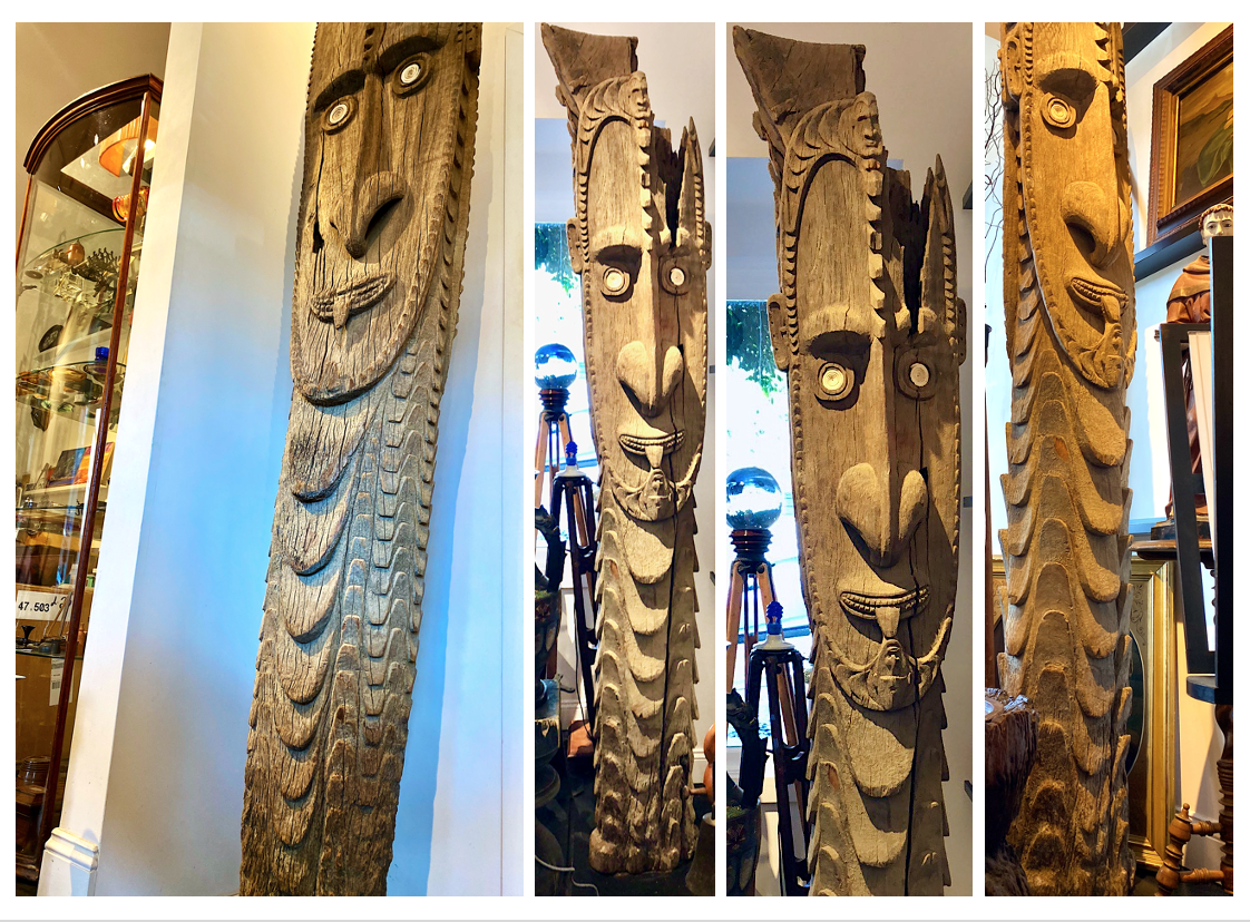 Title: Papua New Guinea Ceremonial House Hand Carved Wooden Roof Posts