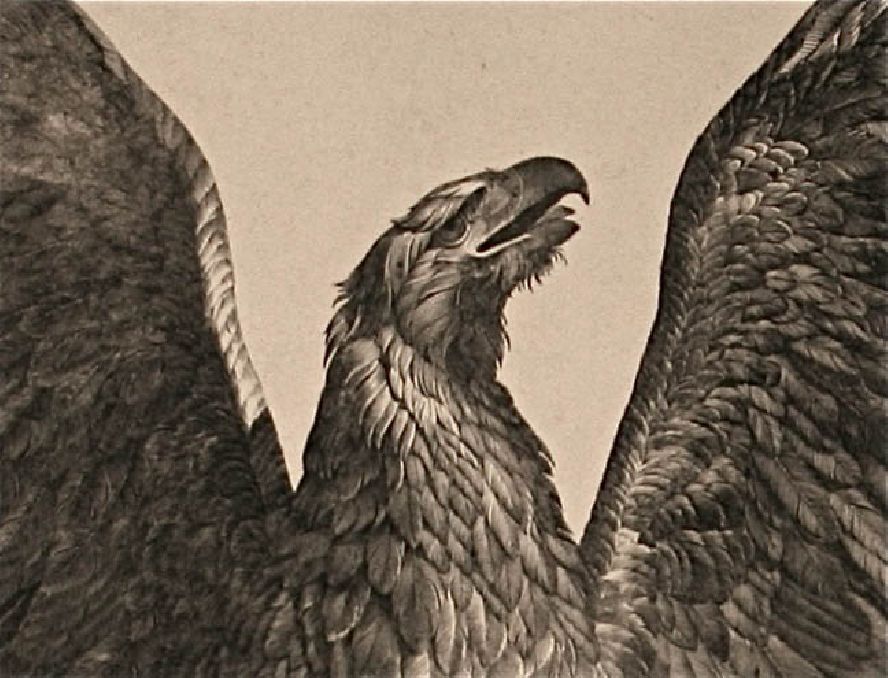 Title: Large Antique Bird Eagle Art Work On Paper Print Metal Etching