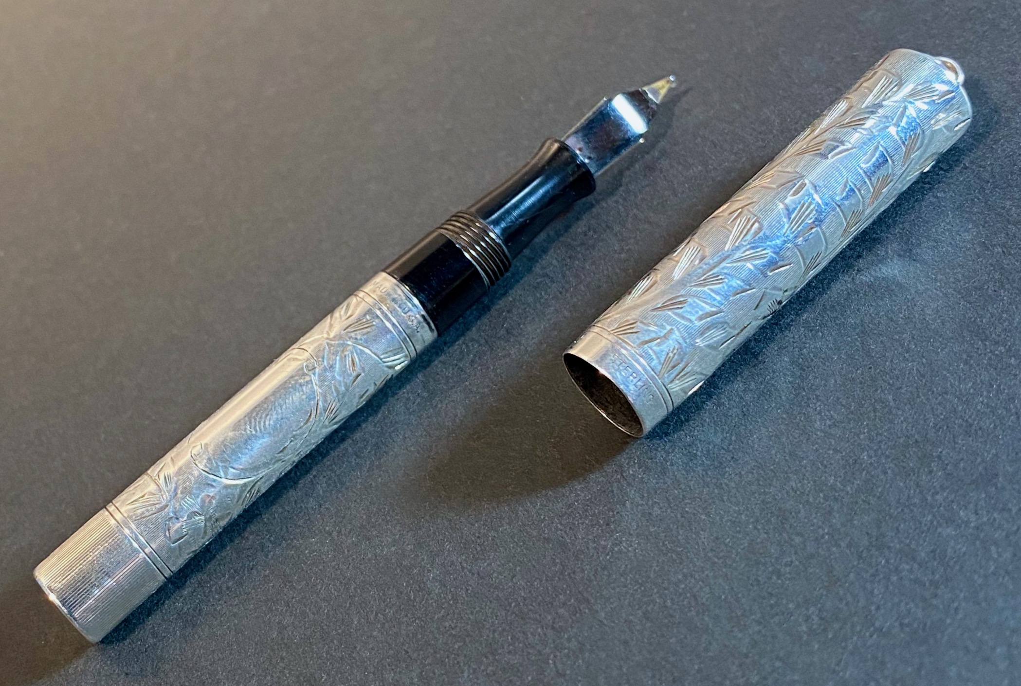 Title: Engraved Sterling Silver Antique Luxury Accessory Fountain Pen