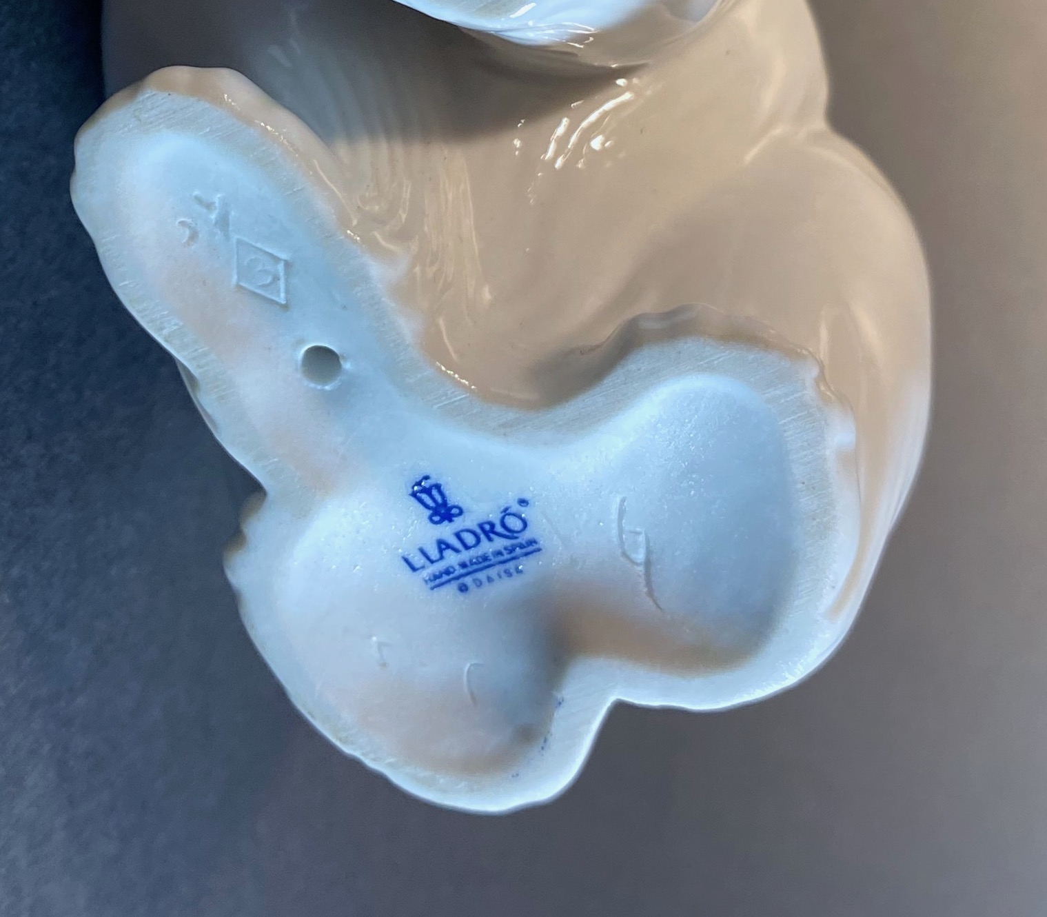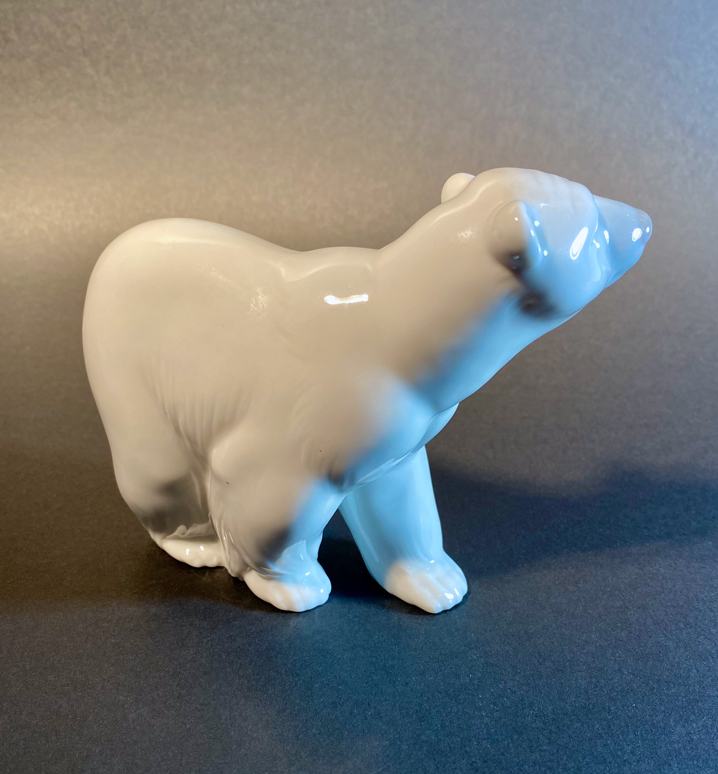 This is a wonderful contemporary graphic Art Deco vintage Polar Bear LLadro Figurine. A White porcelain polar bear sculpture by LLadro hand-made in Spain. It is in the form of a polar bear. The figurine is in overall very good condition, free of damage. The finish is glossy. It Measures approximately 5 inches long 4 inches tall. Lladró is a Spanish company known for its exquisite handcrafted porcelain sculptures. The history of Lladró dates back to 1953 when three brothers, Juan, José, and Vicente Lladró, started creating ceramics in their small workshop in Almàssera, a village near Valencia, Spain. Initially, Lladró focused on producing functional items like vases and plates. However, in the late 1950s, they shifted their focus to figurines and decorative sculptures made of porcelain. The brothers developed a unique formula for their porcelain that gave it a distinctive translucent quality and a smooth finish. Lladró sculptures gained international recognition in the 1960s and 1970s, becoming highly sought-after collectibles. The company's artisans meticulously handcrafted each piece, paying attention to every detail. Lladró sculptures often depicted elegant and delicate figures, such as ballerinas, children, and romantic scenes. Over the years, Lladró expanded its range of sculptures to encompass various themes and styles, including religious, nature-inspired, and contemporary designs. The company embraced technological advancements while preserving its commitment to handcraftsmanship.