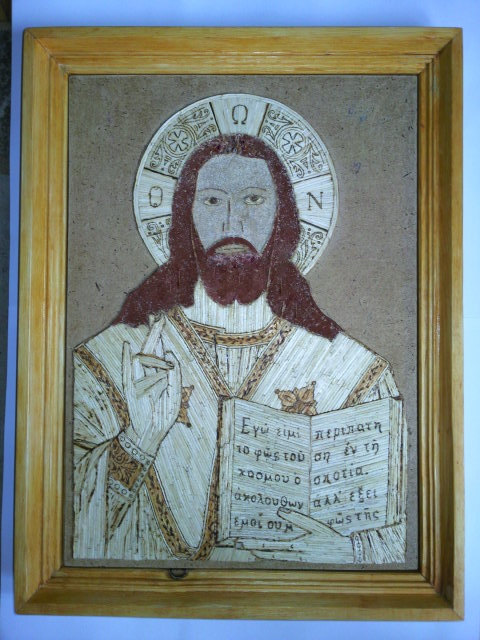 This wooden masterpiece is a revolutionary art creation that is composed in substance of 1800 wood fragments intricately put together to produce the final depiction. Aside from the artwork’s foundation, the entirety of this piece has been constructed using only miniature wood pieces and a water-based glue. In addition to its natural artistry, the piece is unique in having been composed by utilizing the least amount of chemical influence possible. This creation incorporates medium-density fibreboard (MDF wood) as its base; the separated fibers of MDF wood allows the composition to be stronger and more resistant to temperature and pressure – ensuring this quality piece will last nearly a lifetime. Applications of natural mundane colors were enhanced through the process of slightly varnishing the wood upon completion of the illustration. This method of “painting” produces a sustainable plaster to ensure long-time upkeep as well. This art piece is both delicate and natural; a masterpiece of this magnitude takes over 90 days to compose, accompanied by hundreds of hours of manual labor to piece together the wood fragments in such a way that this beautiful depiction of Christ Pantocrator could be observed – this process makes this piece far more detailed and elaborate than a traditional art painting. This artwork has been created to portray a landscape of art mastery that can only be accomplished through a thorough understanding of art itself. A combination of great skill and a sound art judgment were used to conclude this creative endeavor. This Christ Pantocrator piece has been emphasized in artfulness through both its brilliant details and enduring structure. This wooden masterpiece is the only one of its kind and has never nor will ever be replicated or reproduced. It is a coveted piece of religious art that cannot be purchased from any other artist.