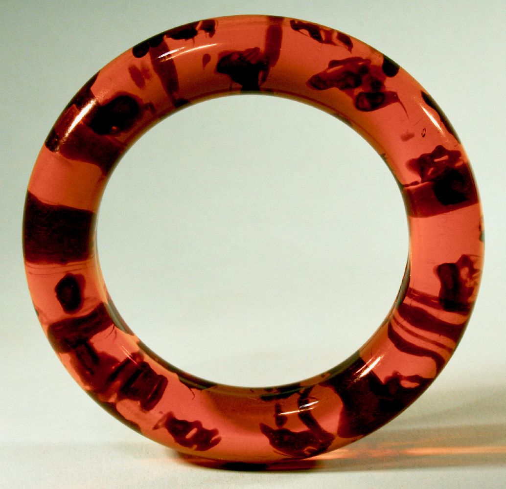 Bakelite / sometimes spelled Baekelite) was the first plastic made from synthetic components. Developed by the Belgian–American chemist Leo Baekeland in Yonkers, New York, in 1907. Bakelite was patented on December 7, 1909. The creation of a synthetic plastic was revolutionary for its electrical nonconductivity and heat–resistant properties in electrical insulators, radio and telephone casings and such diverse products as kitchenware, jewelry, pipe stems, children's toys, and firearms. The "retro" appeal of old Bakelite products has made them collectible