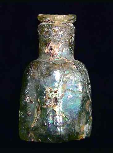 Title: Rare Ancient Iridescent Byzantine Square Glass Bottle 4th Century