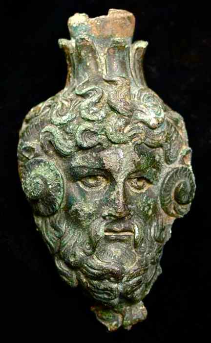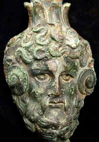 Title: Ancient Roman Bronze Ornament Vessel God Head Of Zeus Ammon