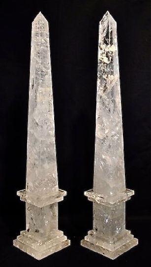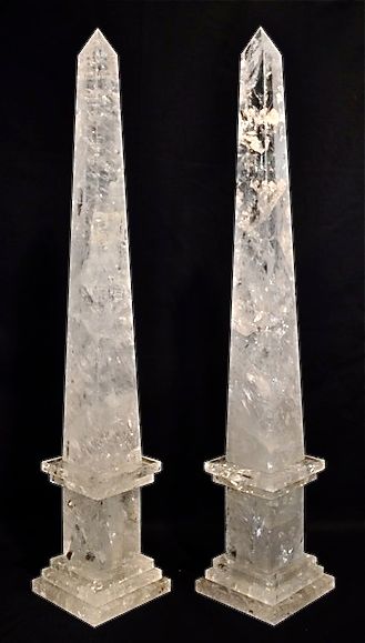 You can order a pair of rock crystal obelisks. Will need a size? They are wonderful. there is great interest in the rock crystal occlusions. These are terrific mantel piece obelisks. This pair stands an impressive 31 inches tall. These make a statement. They are classic and could even dress up an entryway on either side of your console table. Call us for more information. Perhaps the obelisks most preferred by decorators are made of rock crystal. They work anywhere, anytime. They refract the light, and enhance any space. For more ideas using rock crystal obelisks. I love the asymmetry of this grouping of objects on an ornate console table. There is a lot of contrast between the black bulky bust, and then the translucent obelisks. This is a featured art consignment piece. All collectibles are curated distinguishable art objects from top end collections. We’ve built an exceptionally sophisticated safe infrastructure with a proven consignment management system featuring high quality visual art and antiques, for both buyers and sellers. All published works of art must be unique & rare in order to receive an invitation to join our exclusive gallery forum. You can reach us if you have any questions. 415-776-0104