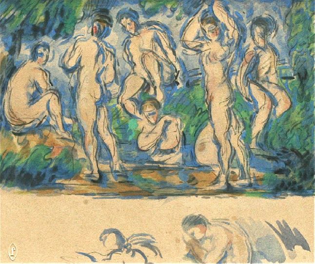 Title: Les Baigneuses Watercolor Lithograph Print Artist Paul Cezanne