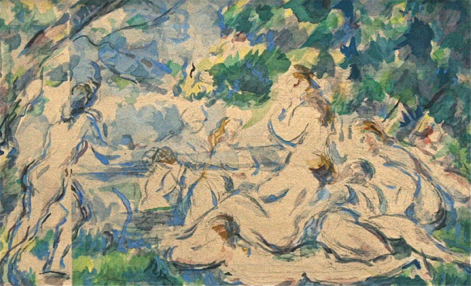 Title: Les Baigneuses Watercolor Lithograph Print Artist Paul Cezanne
