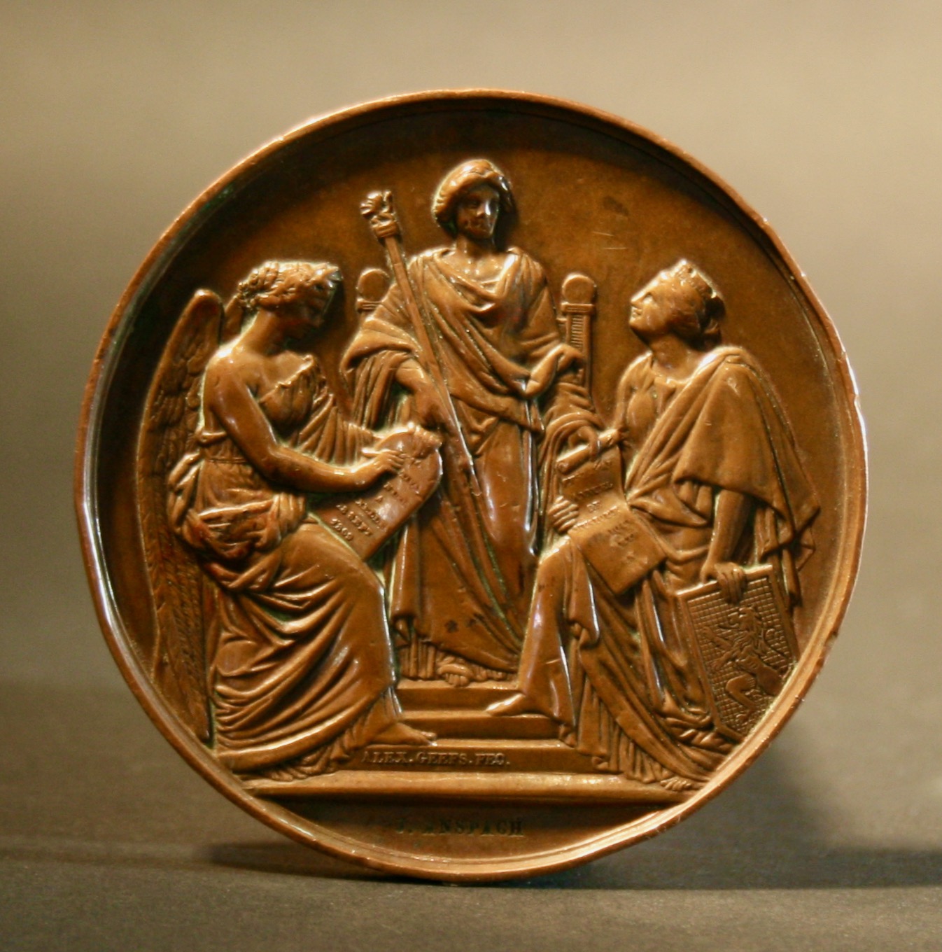 King Leopold II Bronze Medal: First Annual Music Festival in Brussels, 1869, 65mm This exquisite 2 1/2-inch medal is in outstanding condition, weighing 121.2 grams. This particular medal was created for the Belgian music festival in 1869. Artists: Edouard Louis Geerts / Alexandre Georges Geefs Country of Origin: Belgium, Year: 1869, Material: Bronze, Diameter: 65 mm Obverse (Front): Left-facing bust of Leopold II with the inscription "LEOPOLD II, ROI DES BELGES" (Leopold II, King of the Belgians). Reverse (Back): Depiction of Belgium holding a scepter, flanked by Victory and the City of Brussels. Victory holds a tablet inscribed with "1ER FESTIVAL ANNUEL A BRUXELLES 28 SEPT. 1869" (1st Annual Festival in Brussels, September 28, 1869). The City of Brussels holds a scroll inscribed with "FESTIVAL ANNUEL DE MUSIQUE CLASSIQUE DÉCRÉTÉ EN 1868" (Annual Festival of Classical Music Enacted in 1868). Signatures: On the obverse: "ED. GEERTS. FEC. ALEX. GEEFS. SCULP." On the reverse: "ALEX. GEEFS. FEC." The government, with the aim of establishing a federation of musical societies in Belgium, allocated a budget to organize a grand annual festival of classical music. This medal was issued to commemorate the inaugural event and was presented to all the performers, chorus singers, and instrumentalists. the Belgium music festival in 1869. Here's some information about the medal and its significance: Description: The medal is made of bronze and measures 65 mm (approximately 2 1/2 inches) in diameter. It weighs 121.2 grams, making it a substantial and significant piece. Medal Design: The obverse (front) of the medal features a bust of Leopold II, who was the King of the Belgians at that time. The inscription "LEOPOLD II, ROI DES BELGES" translates to "Leopold II, King of the Belgians." This side of the medal honors the reigning monarch. Reverse Design: On the reverse (back) of the medal, you can find a depiction of Belgium holding a scepter. Flanking her are figures representing Victory and the City of Brussels. Victory holds a tablet inscribed with "1ER FESTIVAL ANNUEL A BRUXELLES 28 SEPT. 1869," which translates to "1st Annual Festival in Brussels, September 28, 1869." The City of Brussels holds a scroll with the inscription "FESTIVAL ANNUEL DE MUSIQUE CLASSIQUE DÉCRÉTÉ EN 1868," which means "Annual Festival of Classical Music Enacted in 1868." This side of the medal commemorates the annual classical music festival that took place in Brussels in 1869. Artists: The medal was created by two Belgian artists, Edouard Louis Geerts and Alexandre Georges Geefs. Their names are inscribed on the medal, indicating their involvement in its design and production. Historical Significance: This medal is a historical artifact that represents the cultural and musical significance of the annual classical music festival in Brussels during the reign of Leopold II. It's a testament to the importance placed on classical music and the arts in Belgium during that period. Condition: The fact that the medal is in excellent condition is noteworthy for collectors and historians, as it ensures that the medal retains its original beauty and historical value. Overall, this medal is a valuable and fascinating piece of Belgian history and art, reflecting the cultural and artistic achievements of the time and the support for classical music in Belgium during the late 19th century.