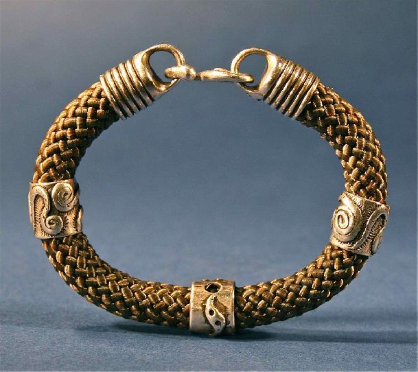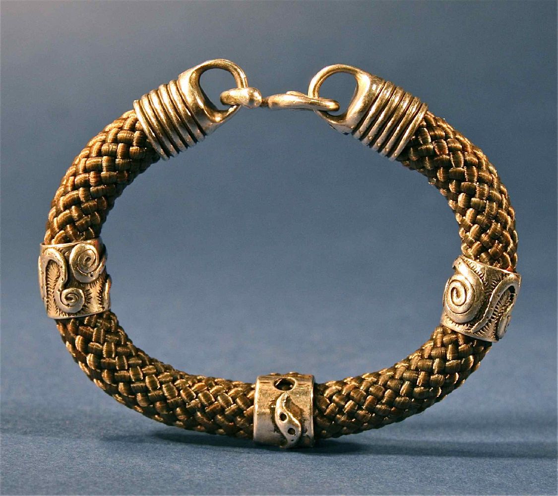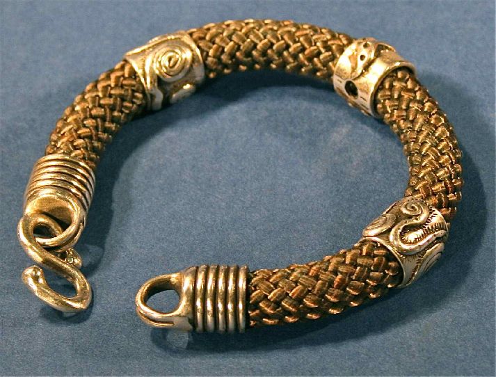 Title: Antique Woven Horse Hair & Silver Jewelry Wrist Bangle Bracelet