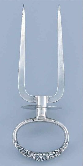 Title: A Sterling Silver Two Prong Meat Holder Designed Tool Utensil