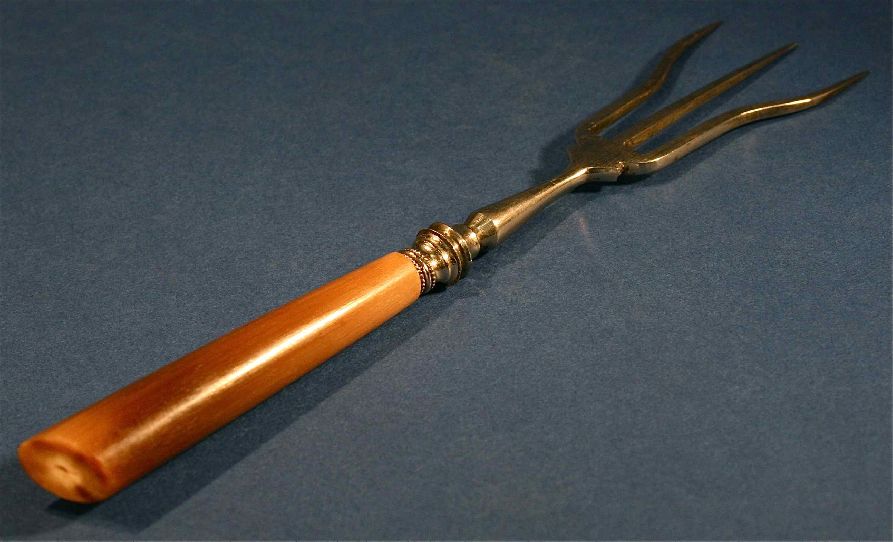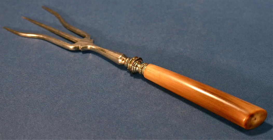 Title: Antique Victorian Silver Horn Fork Dining Meat Tool Utensil
