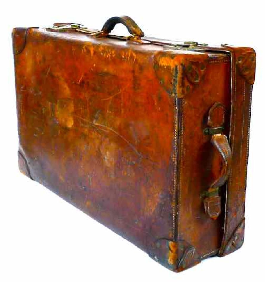 Title: Antique Handmade Leather Traveling Bag Luggage