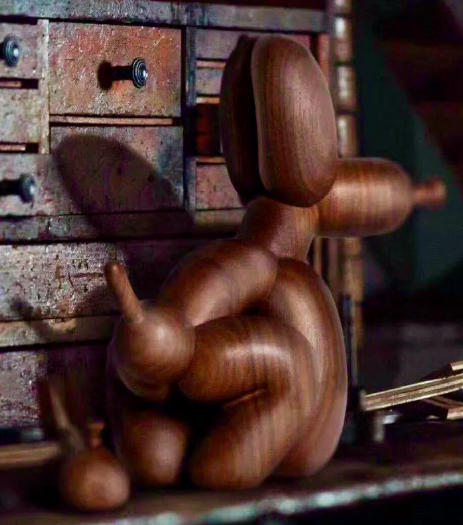 Title: Decorative Custom Handmade Wooden Balloon Shitting Dog Sculpture