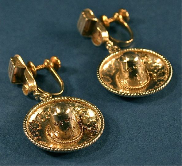 Title: Antique Silver Handmade Mexican Sombrero Hats & Shoe Earrings