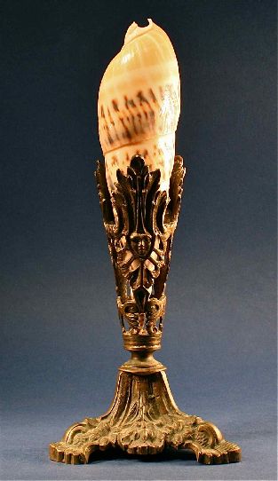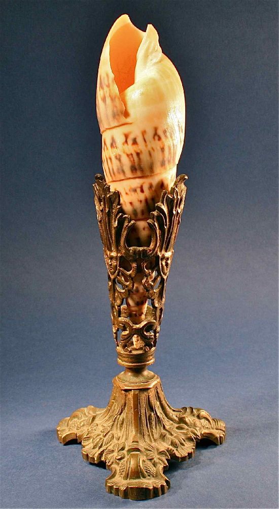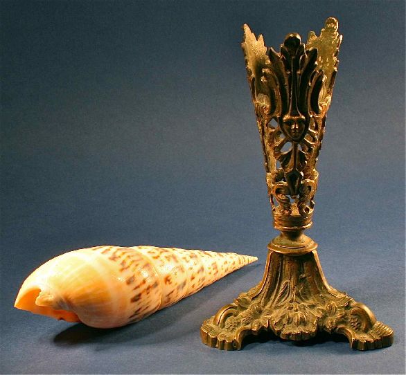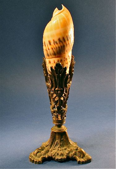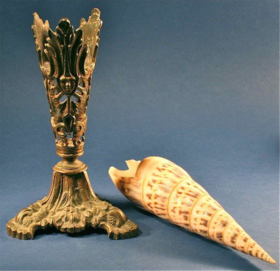 Title: Antique Decorative Bronze Footed Display Stand & Old Sea Shell