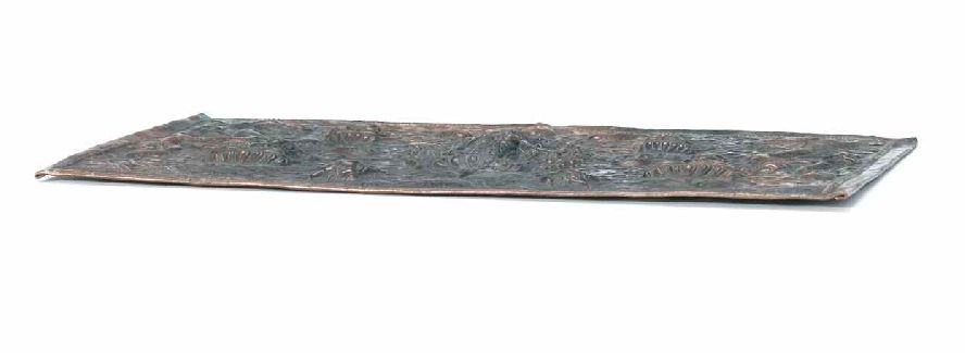 A Tibetan Repousse Plaque, ca. 19th Century: 7" x 11-3/4" Detailed copper repousse plaque with Vairocana, Amitabha, Amoghasiddhi, Akshobya and Ratnasambhava, the five Dhyani Buddhas on foliate ground with flower buds, flanked by dragons. Condition: Uneven patina. A Tibetan Repousse Copper Plate, Buddhist auspicious emblems and Chinese mythological symbols, all surrounded by dragons. 19th Century or Later, the art is a Buddhist concept reinforcing the transitory nature of all earthly phenomena. Repoussé is a metalworking technique in which a malleable metal is ornamented or shaped by hammering from the reverse side. There are few techniques that offer such diversity of expression while still being relatively economical. Chasing is the opposite technique to repoussé, and the two are used in conjunction to create a finished piece. It is also known as embossing. The techniques of repoussé and chasing utilise the plasticity of metal, forming shapes by degrees. There is no loss of metal in the process, as it is stretched locally and the surface remains continuous. The process is relatively slow, but a maximum of form is achieved, with one continuous surface of sheet metal of essentially the same thickness. Direct contact of the tools used is usually visible in the result, a condition not always apparent in other techniques, where all evidence of the working method is eliminated. The word repoussé is French and means "pushed up". Repoussage is actually the correct noun to refer to the technique, with repoussé being an adjective referring to a piece to which the technique has been applied (e.g. "repoussé work", "repoussé piece"); however, in English it has become common to use repoussé as a noun. A famous contemporary sculpture created with this technique is the Statue of Liberty in Upper New York Bay. The statue was formed by copper repoussé in sections using wooden structures to shape each piece during the hammering process. Another example, and one from antiquity, is the late Eighteenth Dynasty mummy mask of Tutankhamun. The lapis lazuli and other stones were inlaid in chased areas after the height of the form was completed. The majority of the mask was formed using the technique of repoussé from what appears to be a single sheet of gold.