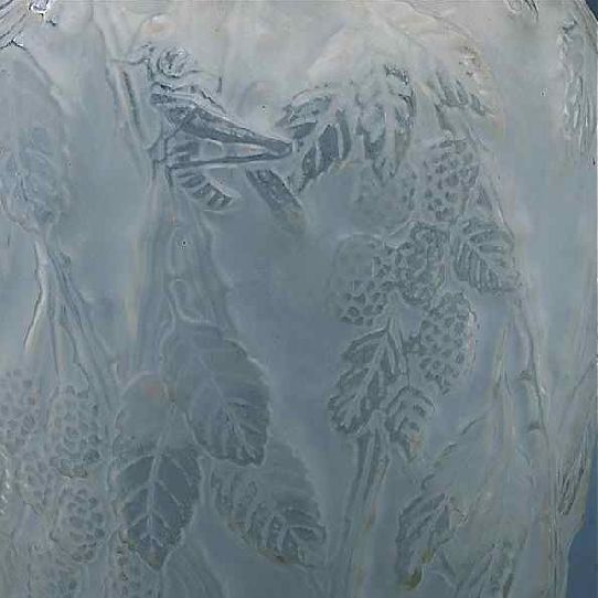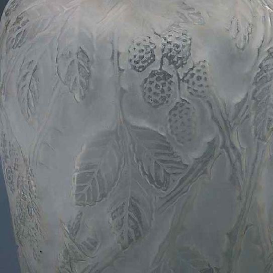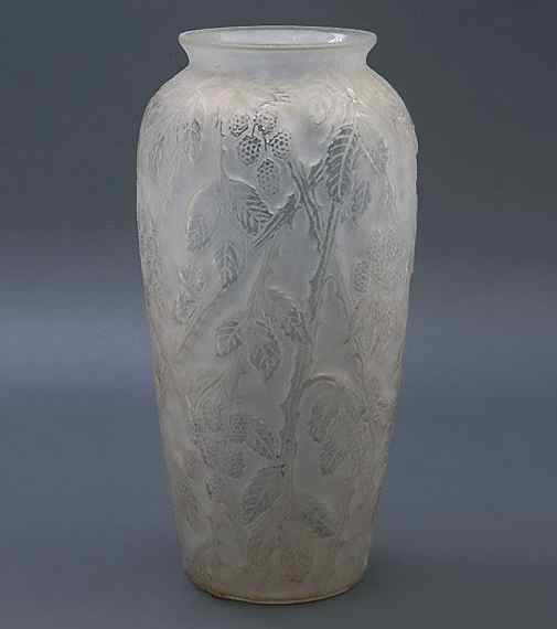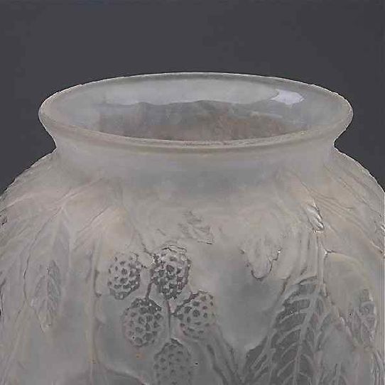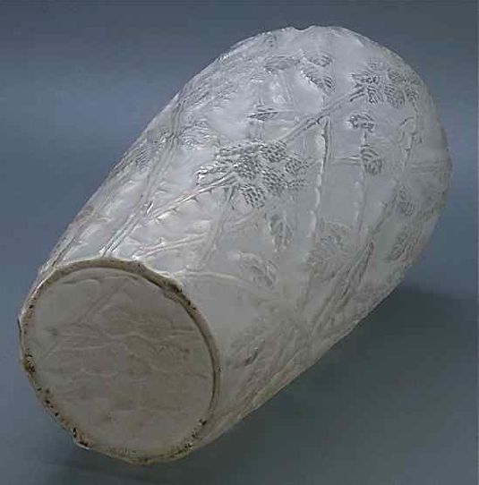Title: French Art Deco White frosted Pressed Molded Floral Glass Vase