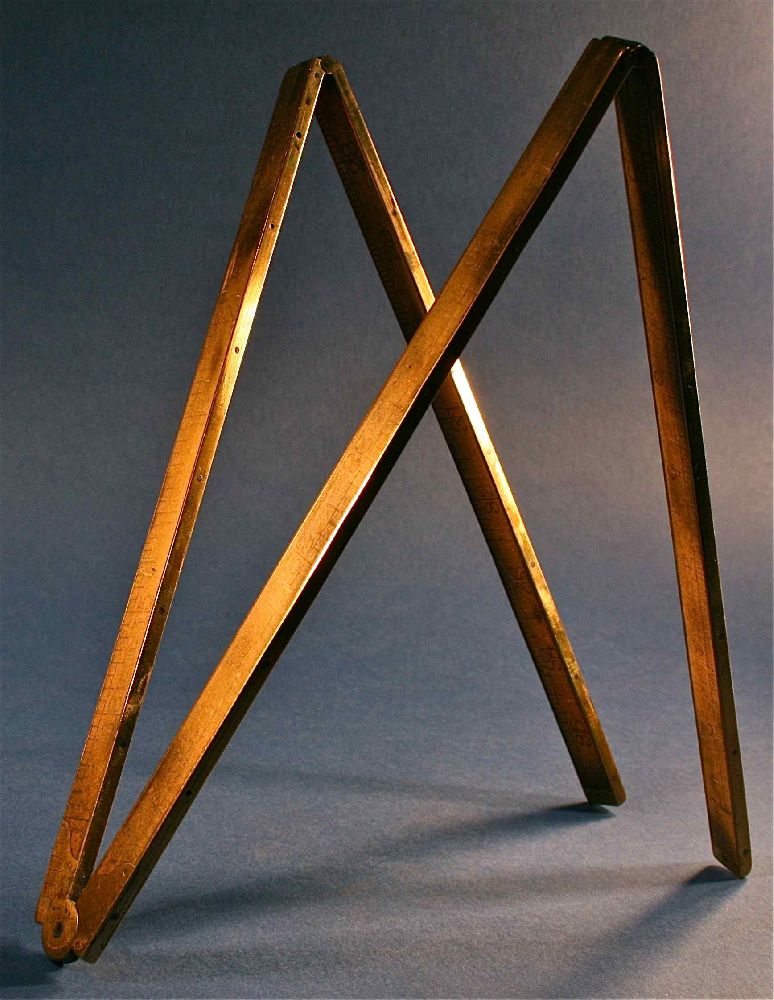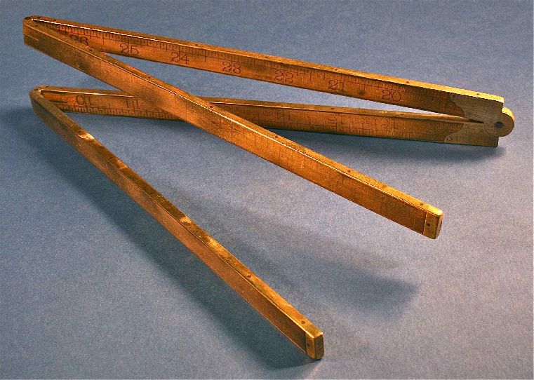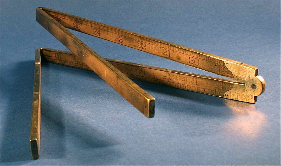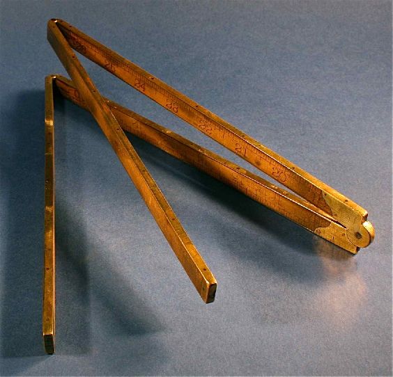 Title: Antique Articulated Folding Brass & Wood Ruler Calculation