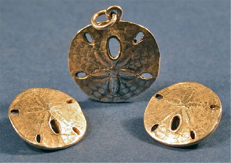 Bring back memories of the sea shore with this fun jewelry set. Stunningly Beautiful Antique Silver Clip On Earrings & Pendant. These were mage from a Sea Animal called a silver dollar. Related animals include the sea cucumbers and starfish. Some times called a sea cookie or snapper biscuit in New Zealand, In South Africa, they are known as pansy shells from their suggestion of a five-petaled garden flower. Sand dollars add interest and diversity to a seashell collection or beach themed. This hand made design is Customize by this great jewelry designer. We are committed to enhancing our customer’s lives by discovering creating, and pointing out only the best art we can find in the world today. We Are Taste-Makers, Art Advisers & Consultants.