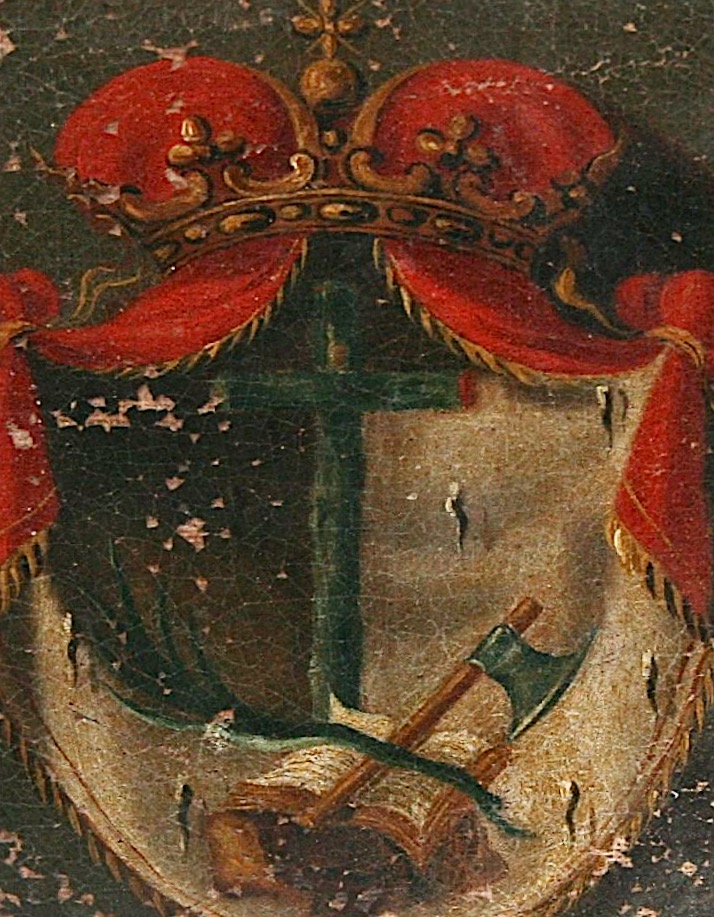 Title: Antique Religious Crest Oil Painting On Canvas & Framed