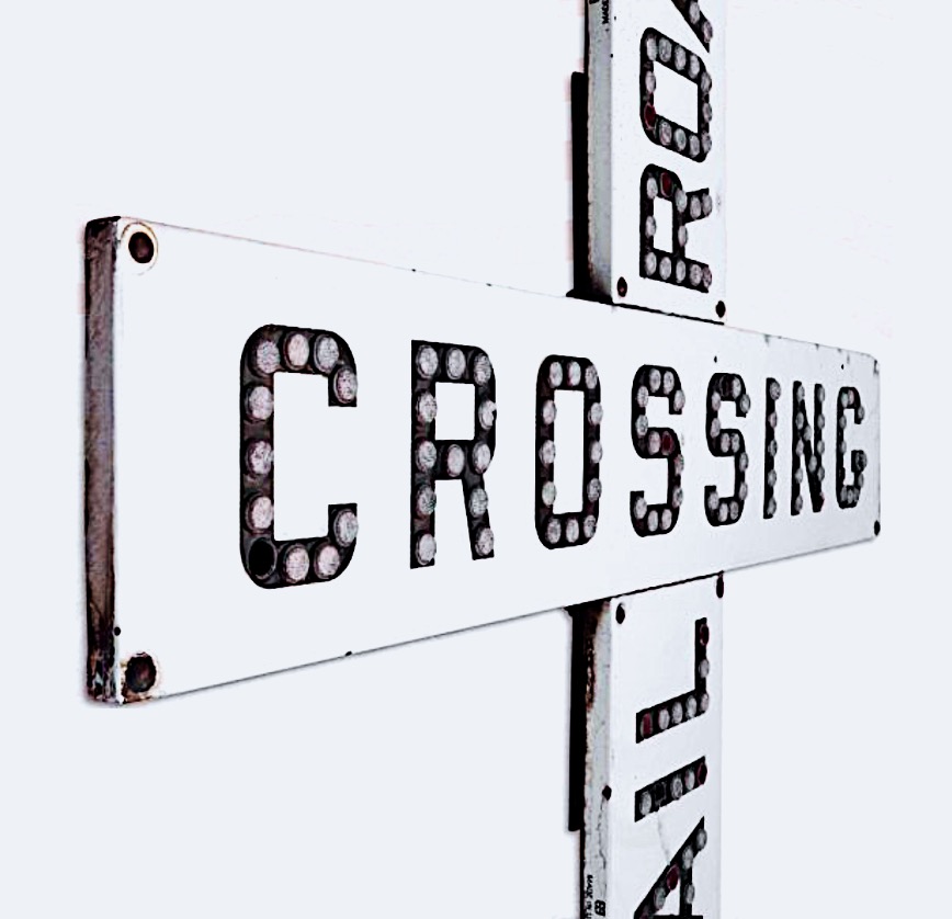 Title: Original Antique Railroad Crossing Reflective Warning Crossbuck Sign