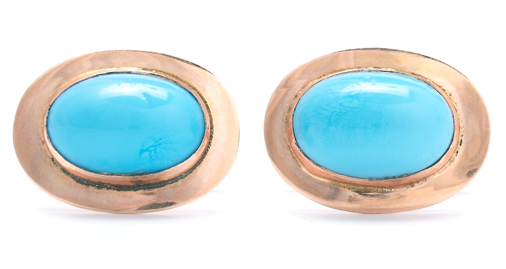 Title: Antique Pair of Yellow Gold & Turquoise Handmade Glass Cufflinks