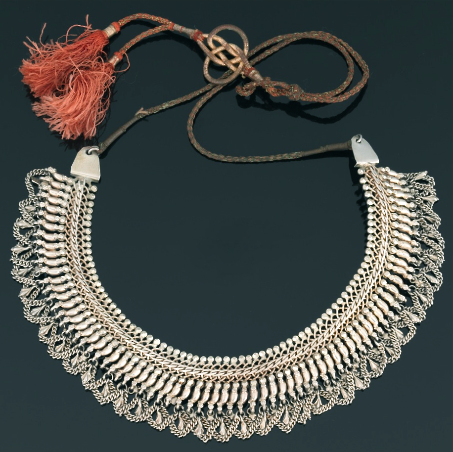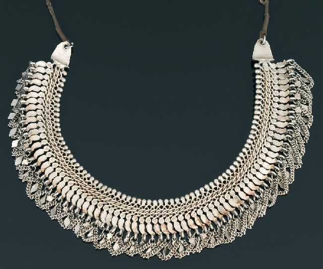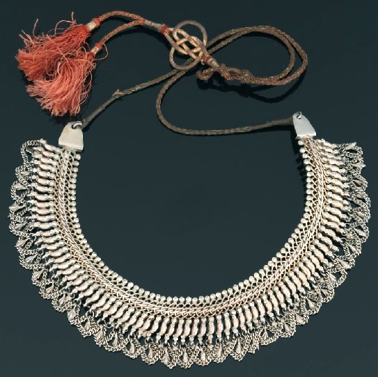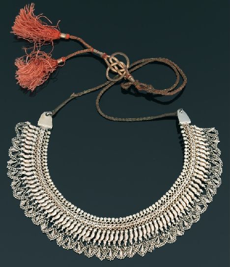Title: Antique Handmade Large Silver & Neck Cord Tribal Jewelry Necklace