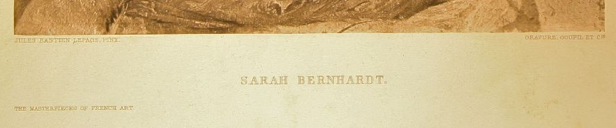 Antique stone print Of Sarah Bernhardt by the artist Jules Bastien. 1892 Original Art portfolio Print (Photoxylograph). This antique print of Sarah Bernhardt is by Jules Bastien-Lepage. The print is on heavy stock paper that is blank on the reverse side. Some foxing on the print (adding to its charm), and a small tear on the top left corner. Otherwise, in good antique condition. Measures 11 inches wide by 14 inches high; actual image measures 7¾ by 9¾. This print was made from the portrait of Mlle Sarah Bernhardt, 1879. Oil on canvas. Ann & Gordon Getty Collection. In the Legion of Honor. Artist jules bastien - sarah bernhardt portrait painting. All of the art is edited and chosen by us for its high quality and workmanship before posting. We are committed to enhancing our customer’s lives by discovering creating, and pointing out only the best art we can find in the world today. We Are Taste-Makers, Art Advisers, Consultants & Publishers Of Spectacular Art Stories. Our job is to be intermediaries between buyers and sellers. We are vetting for high end art patrons. We are determined to catalog the world's most exceptional art and share it with everyone.
