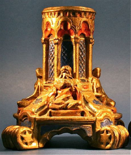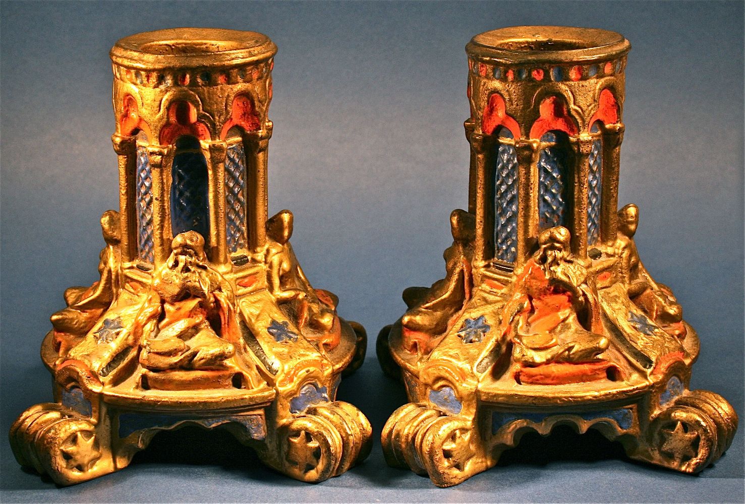 Title: Antique Victorian Architecture Gothic Copper Painted Candlesticks