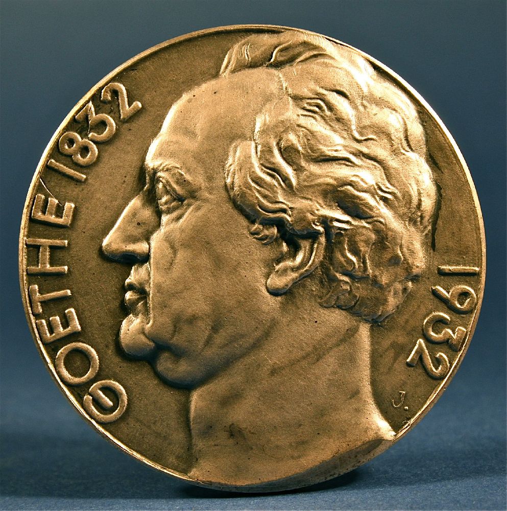 One side - Goethe 1832 -1923 / Other side - Allianz Sportplatz Einweihung Frankfurt a. M. 11. 9. 1932 - E.F. Wiedmann Munz Prage Anstait Frankfurt a. M. COMMEMORATIVE MEDALS WORLD MEDALS Germany No.: 1530 Johann Wolfgang von Goethe (1749-1832), polymath, Silver Medal, 1932, It Comes In It's Box. Johann Wolfgang von Goethe (1749-1832), German poet, playwright, novelist, and natural philosopher is best known for his two-part poetic drama Faust, (1808-1832) which he started around the age of twenty three and didn't finish till shortly before his death sixty years later. He is considered one of the greatest contributors of the German Romantic period. "The highest happiness of man ... is to have probed what is knowable and quietly to revere what is unknowable."* * *"Take life too seriously, and what is it worth? If the morning wake us to no new joys, if the evening bring us not the hope ofnew pleasure, is it worthwhile to dress and undress?"Johann Wolfgang von Goethe (1749 - 1832)