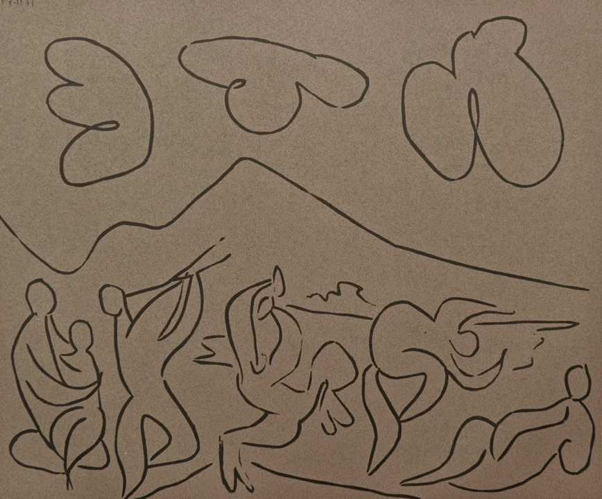 Title: Bacchanal With Mother And Child Linocut Print By Artist Pablo Picasso