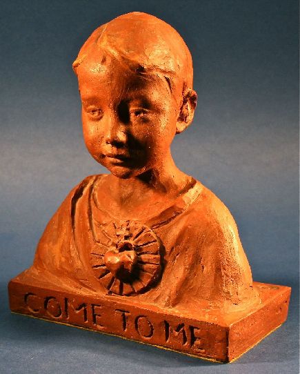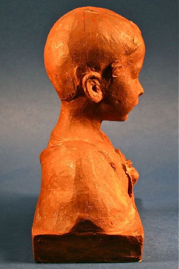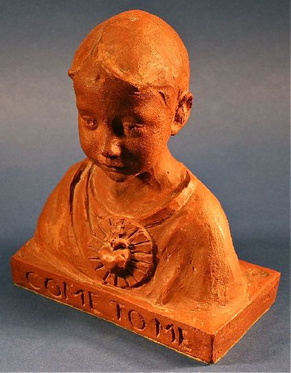 Title: Ceramic Terracotta Boy Sculpture Marker & Epitaph By L. Sciocchetti