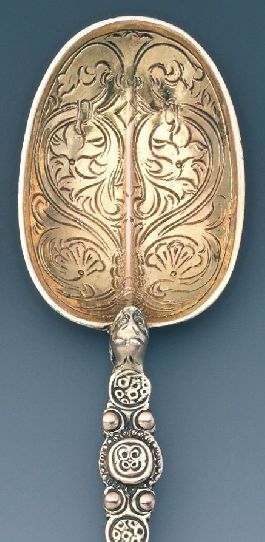 Title: Antique Handcrafted Silver Gold Gilt Souvenir Anointing Spoon