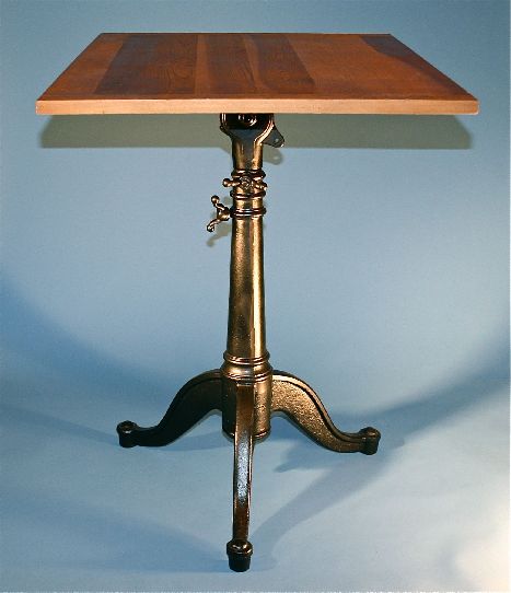Very often a drawing table could look like a writing table or even a pedestal desk when the working surface was set at the horizontal and the height adjusted to 29 inches, in order to use it as a "normal" desk. The only giveaway was usually a lip on one of the sides of the desktop. This lip or edge stopped paper or books from sliding when the surface was given an angle. It was also sometimes used to hold writing implements. When the working surface was extended at its full height, a drawing table could be used as a standing desk.