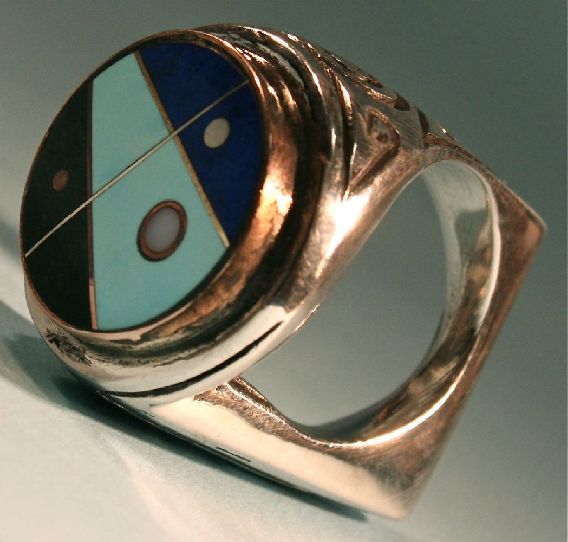 This Is A Spectacular Ring Sculpture By Jewelry Designer Daniel Macchiarini: This ring is made with turquoise, lapis and black jade; the Dots in all of these are marble with a copper inlay surrounding them. The stone inlays are thick, making the chances of cracking the surface very minimal. *All of the art is edited and chosen by us for its high quality and workmanship before posting. These collectibles have been selected with the artist & collector in mind. We are committed to enhancing our customer’s lives by discovering creating, and pointing out only the best art we can find in the world today. We Are Taste-Makers, Art Advisers, Consultants & Publishers Of Spectacular Art Stories. Our job is to be intermediaries between buyers and sellers. We are vetting for high end art patrons. We are determined to catalog the world's most exceptional art and share it with everyone.